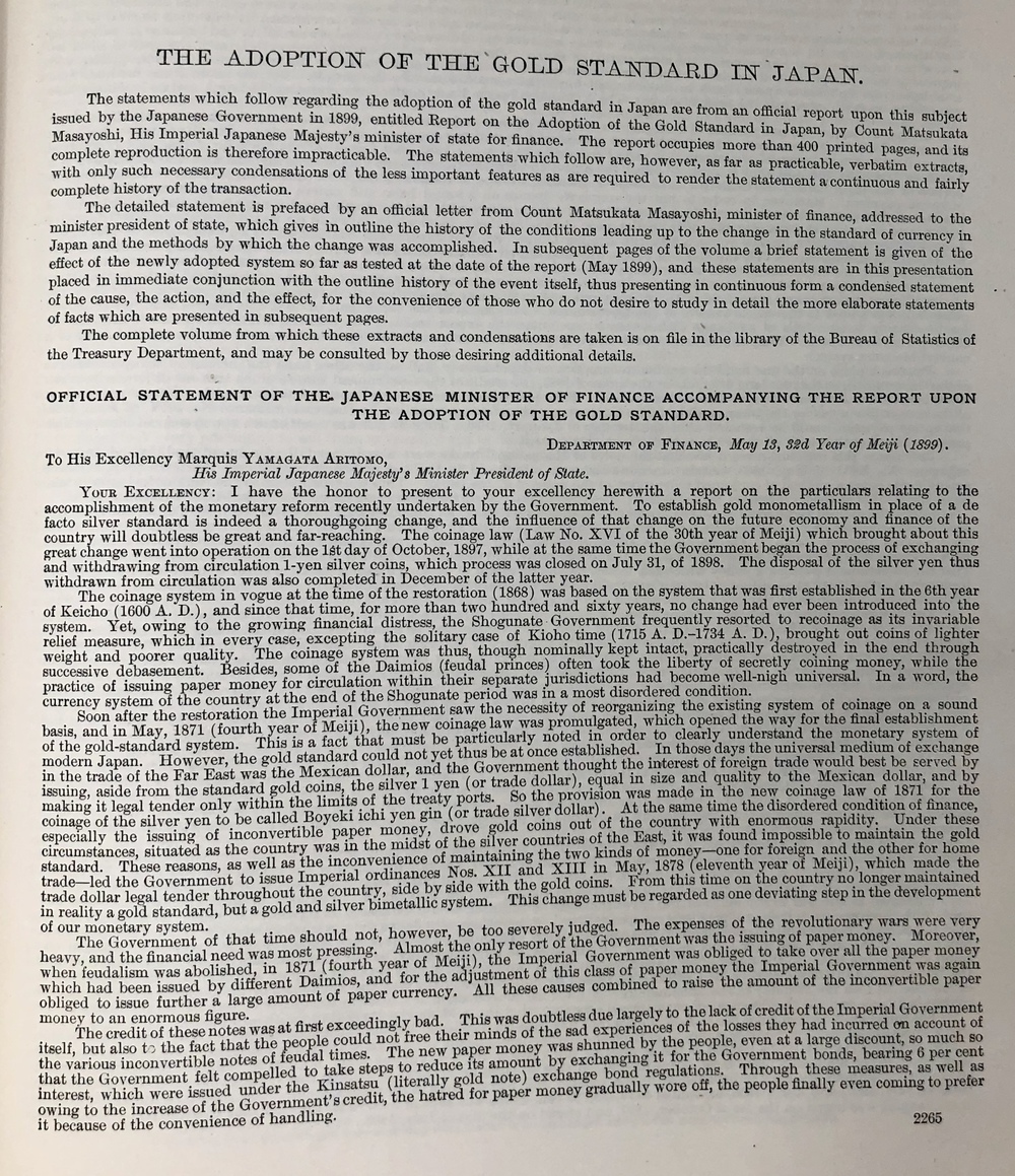 『商業と金融概況報告1901年12月』からの抜刷り 1901年 出版地未記載