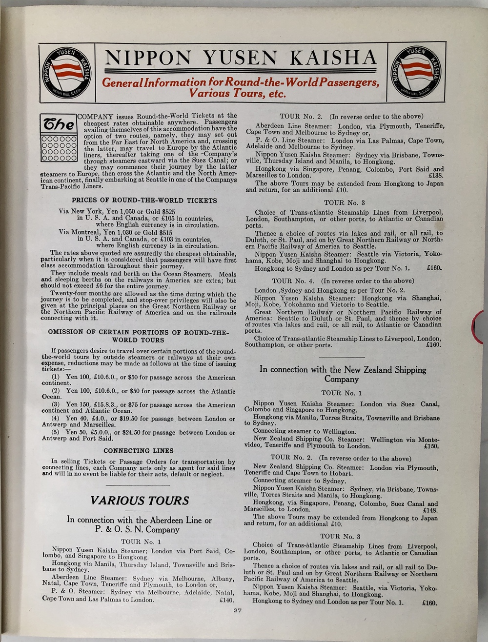 『日本郵船株式会社 営業案内(年刊)』1911年版(1912年用)
