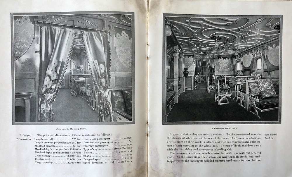 『天洋丸と地洋丸:サンフランシスコ船に就航する14,000トン、21ノットを誇る、無線装置を備えた新造3スクリュー・タービン汽船』