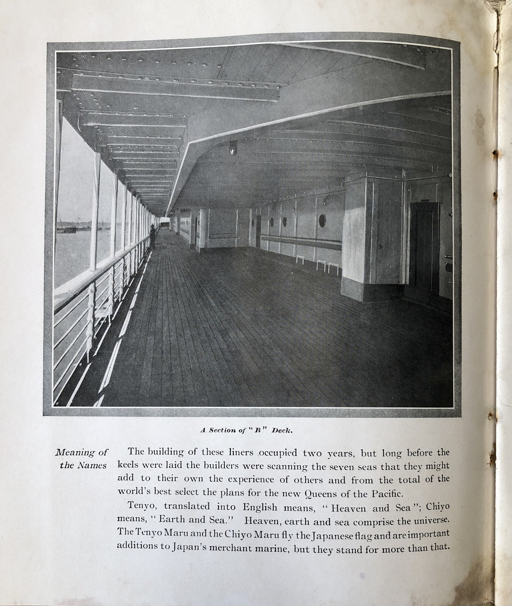 THE NEW TRIPLE SCREW TURBINE STEAMERS. ”TENYO MARU”, “CHIYO MARU” AND “SHINYO MARU” (14,000 TONS) BETWEEN SAN FRANCISCO & THE FAR EAST.