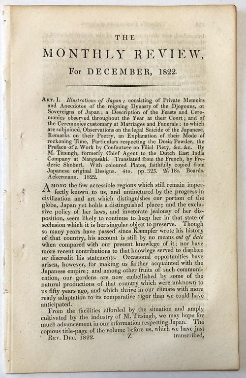 (雑誌『マンスリー・レビュー』1822年12月記事) 1822年 ロンドン刊