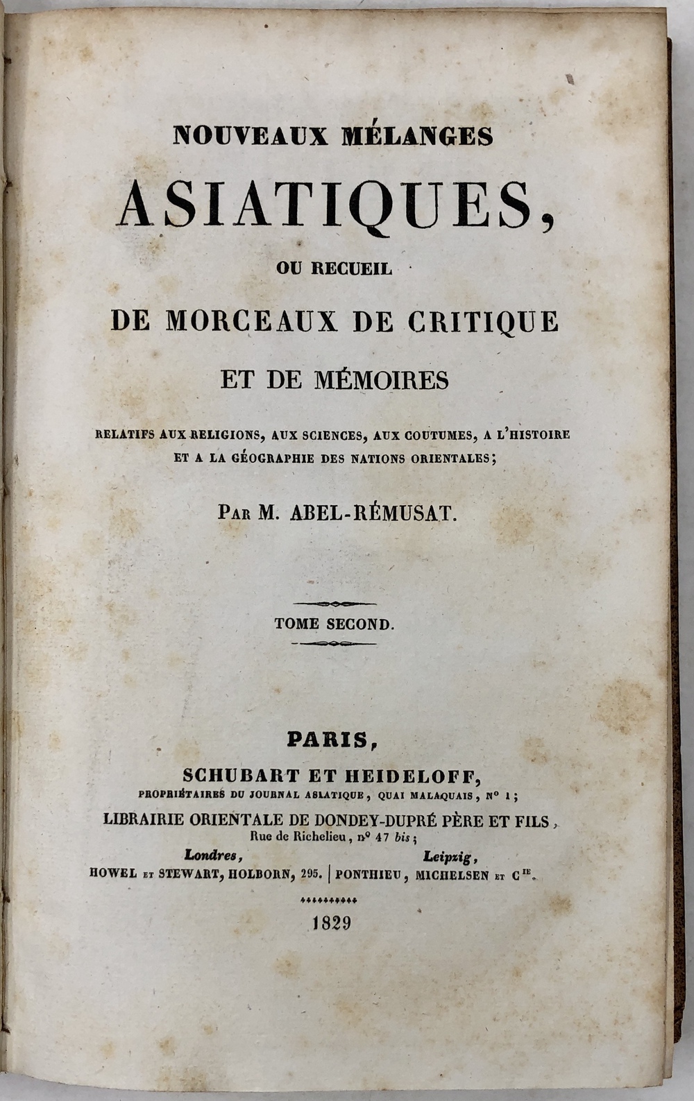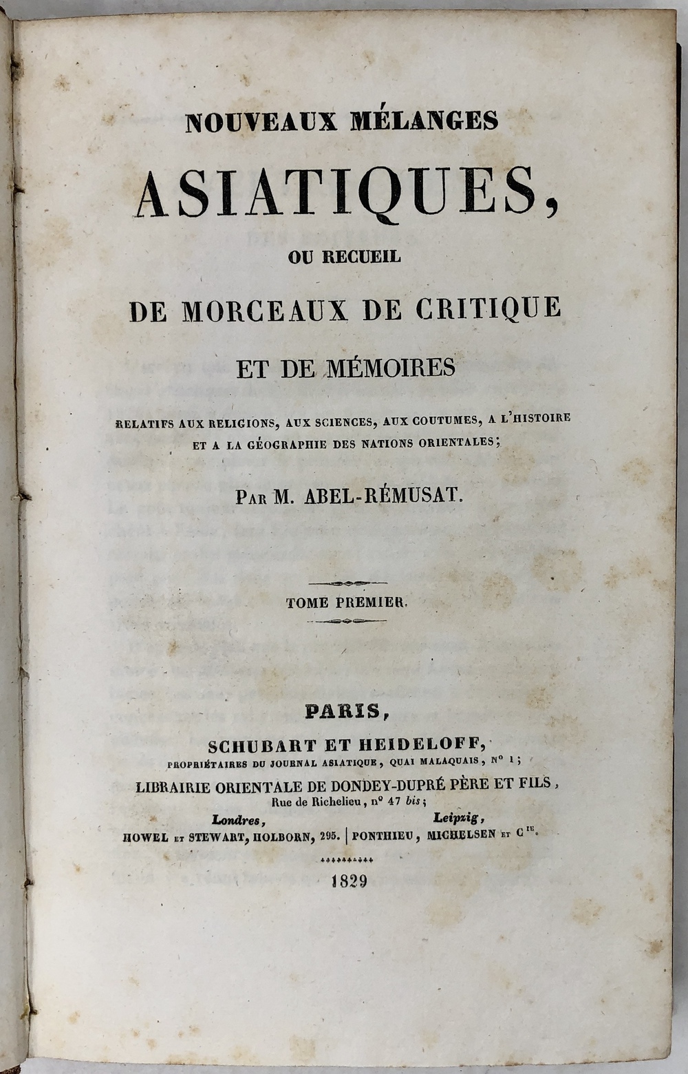 NOUVEAUX MÉLANGES ASIATIQUES, OU RECUEIL DE MORCEAUX DE CRITIQUE ET DE MÉMOIRES RELATIFS AUX RELIGIONS, AUX SCIENCE, AUX COUTUMES, A L’HISTOIRE ET A LA GÉOGRAPHIE DES NATIONS ORIENTALES;…