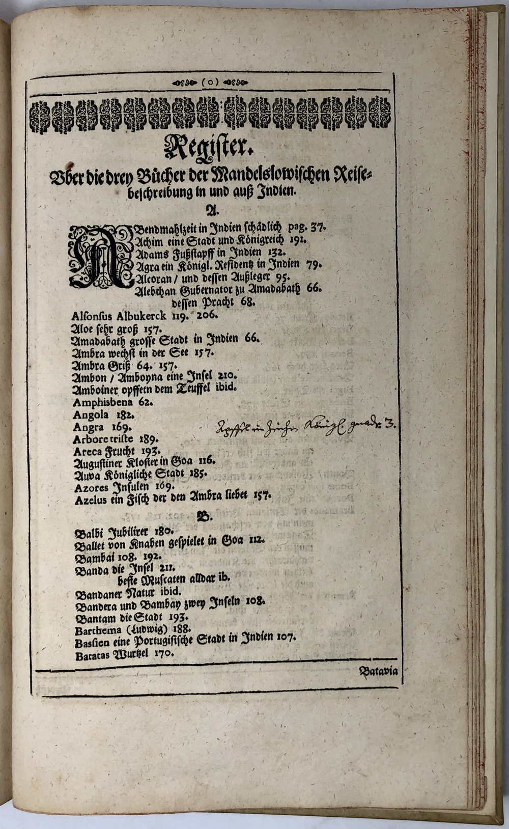 Des fürtrefflichen wolversuchten Meckelburgischen von Adel Herrn JOHANN ALBRECHT von Mandelslo Morgenländische Reise=Beschreibung….