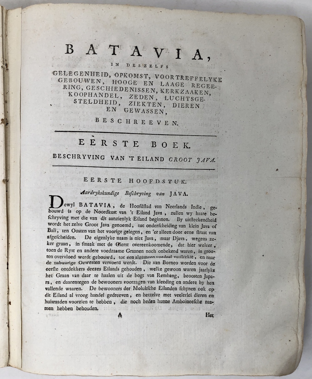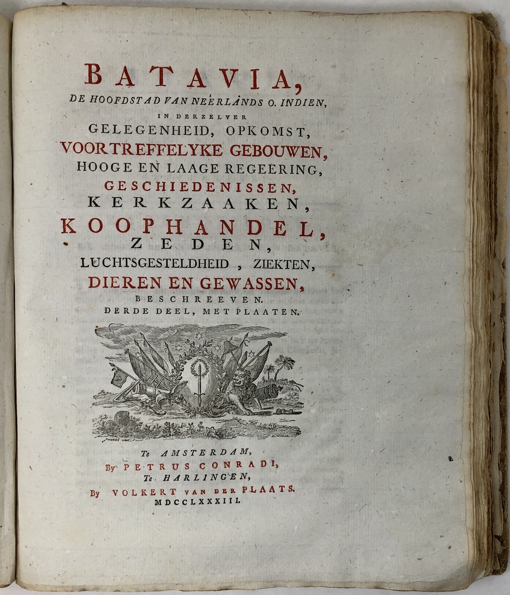 BATAVIA, DE HOOFDSTAD VAN NEERLANDS O. INDIEN, IN DERZELVER GELEGENHEID, OPKOMST, VOORTREFFELYKE GEBOUWEN, HOOGE EN LAAGE REGEERING, GESCHIEDENISSEN, KERKZAAKEN, KOOPHANDEL, ZEDEN, LUCHTSGESTELDHEID, ZIEKTEN, DIREN EN GEWASSEN, BESCHREEVEN. MET PLAATEN.