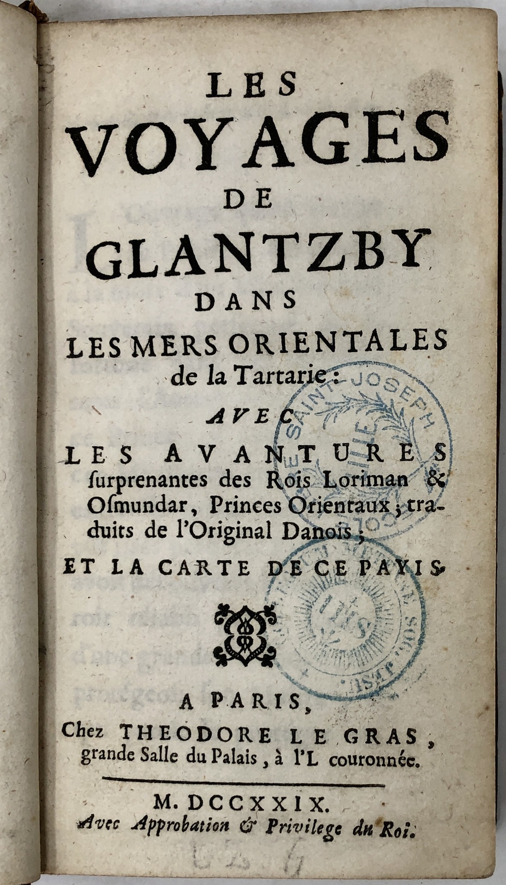 LES VOYAGES DE GLANTZBY DANS LES MERS ORIENTALES de la Tartarie: AVEC LES AVANTURES surprenantes des Rois Loriman & Osmundar, Princes Orientaux; traduits de l’Original Danois; ET LA CARTE DE CE PAYIS.