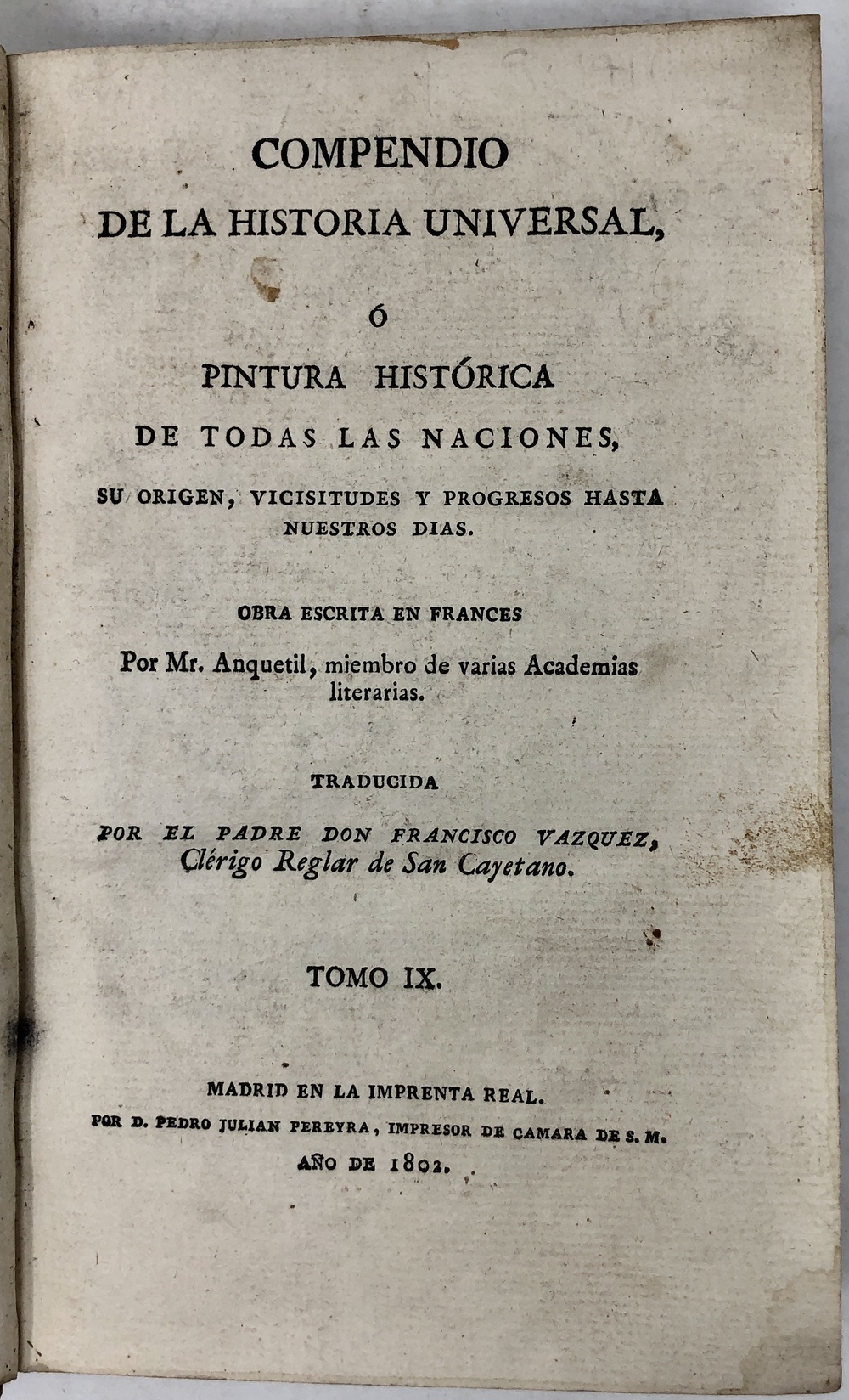 COMPENDIO DE LA HISTORIA UNIVERSAL, Ó PINTURA HISTÓRICA DE TODAS LAS NACIONES, SU ORIGEN, VICISITUDES Y PROGRESOS HASTA NUESTROS DIAS. OBRA ESCRITA EN FRANCES…