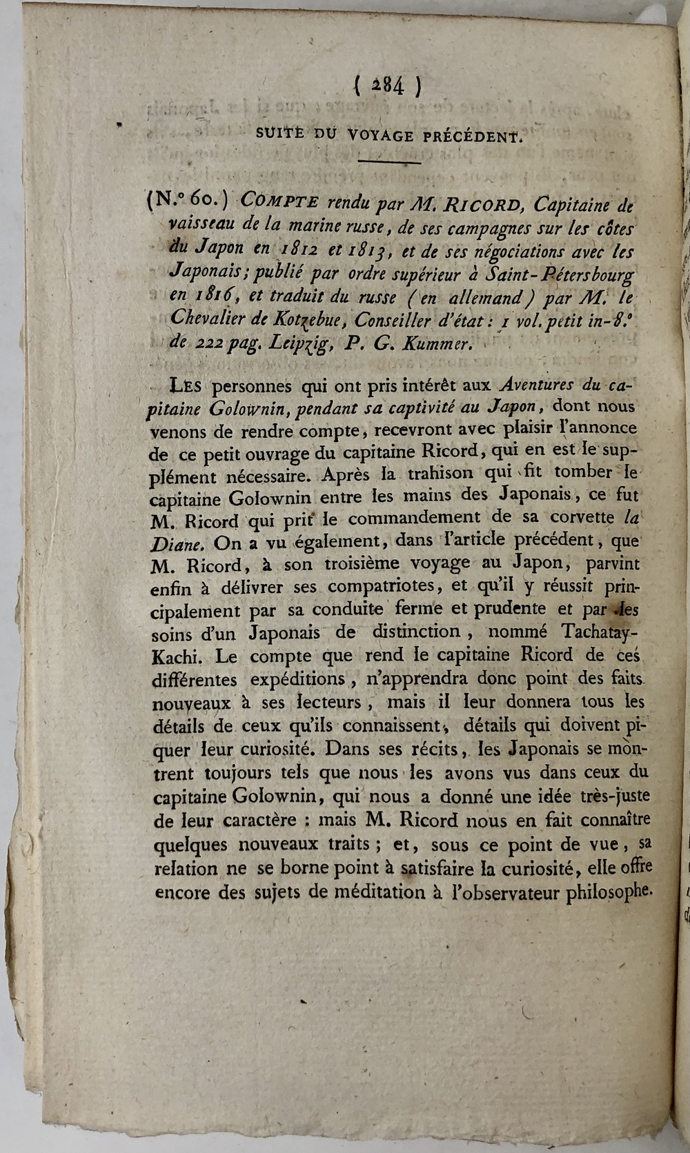 「ゴロウニン『日本幽囚記』書評と解説」「リコルド『対日折衝記』書評と解説」『海事と植民地年報』1818年号第2部所収