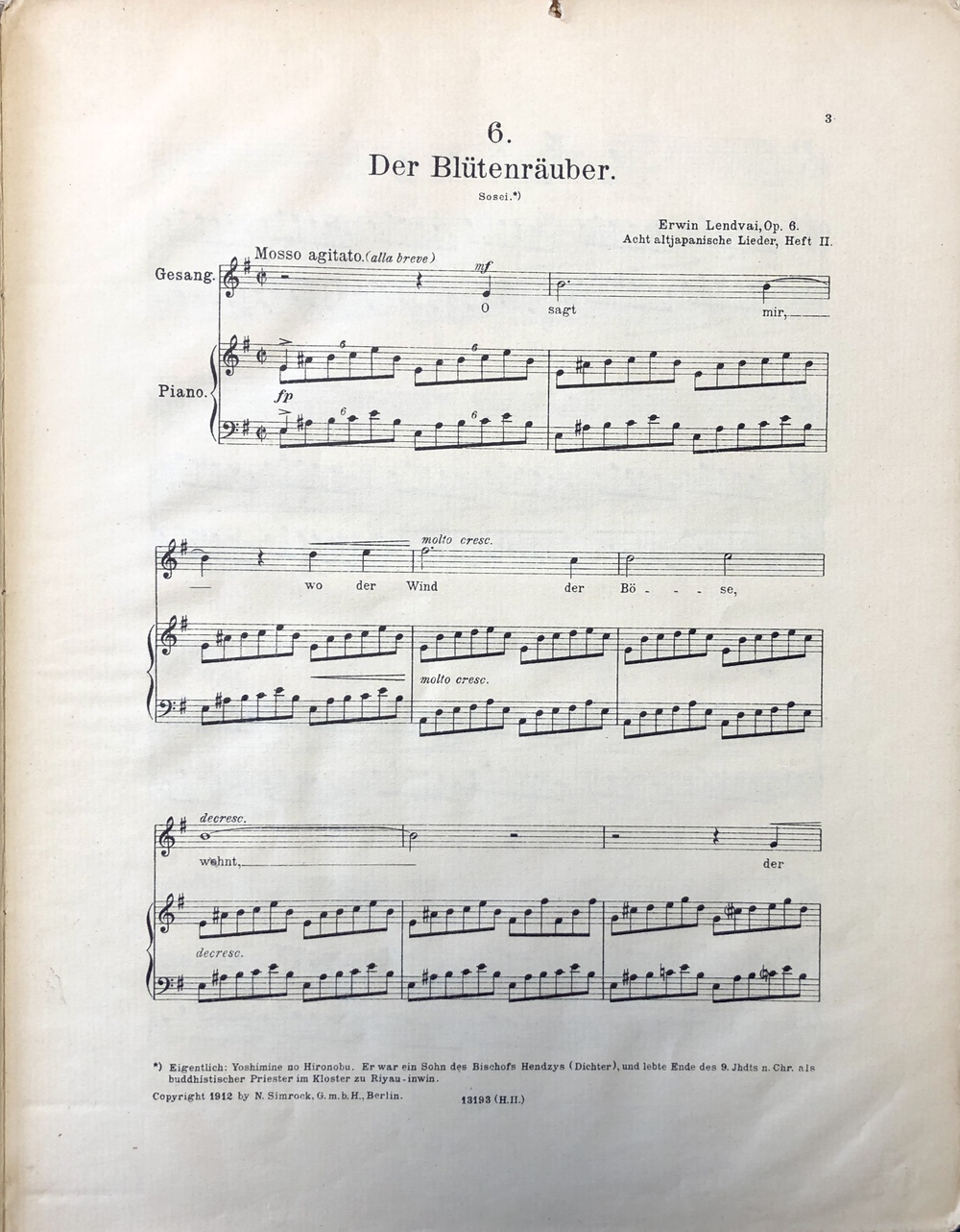 ACHT ALT-JAPANISCHE LIEDER FÜR MITTLERE STIMME MIT KLAVIERBEGLEITUNG. HEFT II. (OP.6)