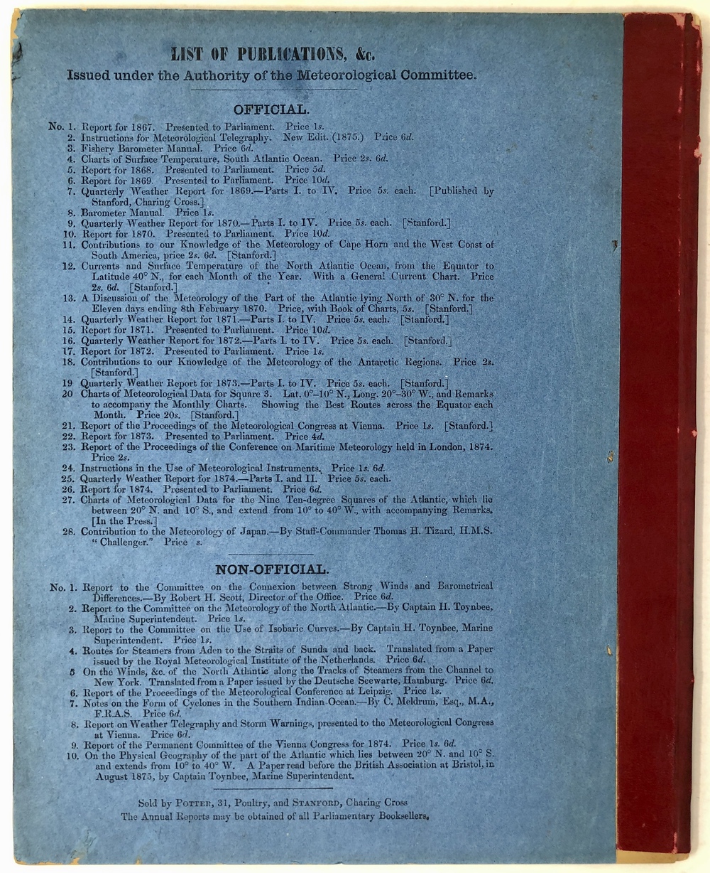 気象委員会公式報告書第28号(イギリス議会文書、いわゆるブルーブック) 1876年 ロンドン刊