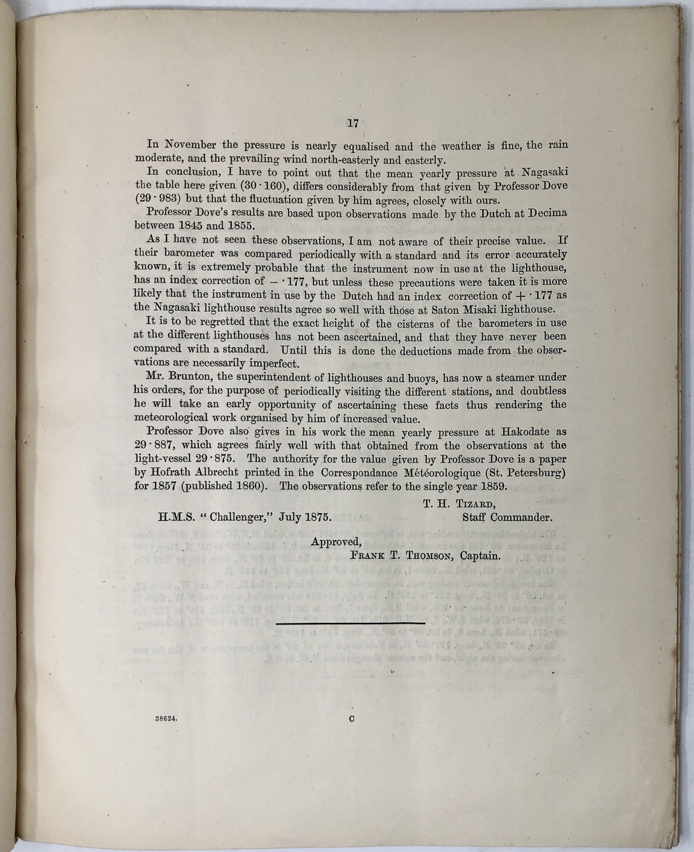 OFFICIAL COPY. CONTRIBUTION TO THE METEOROLOGY OF JAPAN. BY STAFF-COMMANDER THOMAS H. TIZARD, H.M.S. “CHALLENGER” Published by the Authority of the Meteorological Committee. Official No. 28.