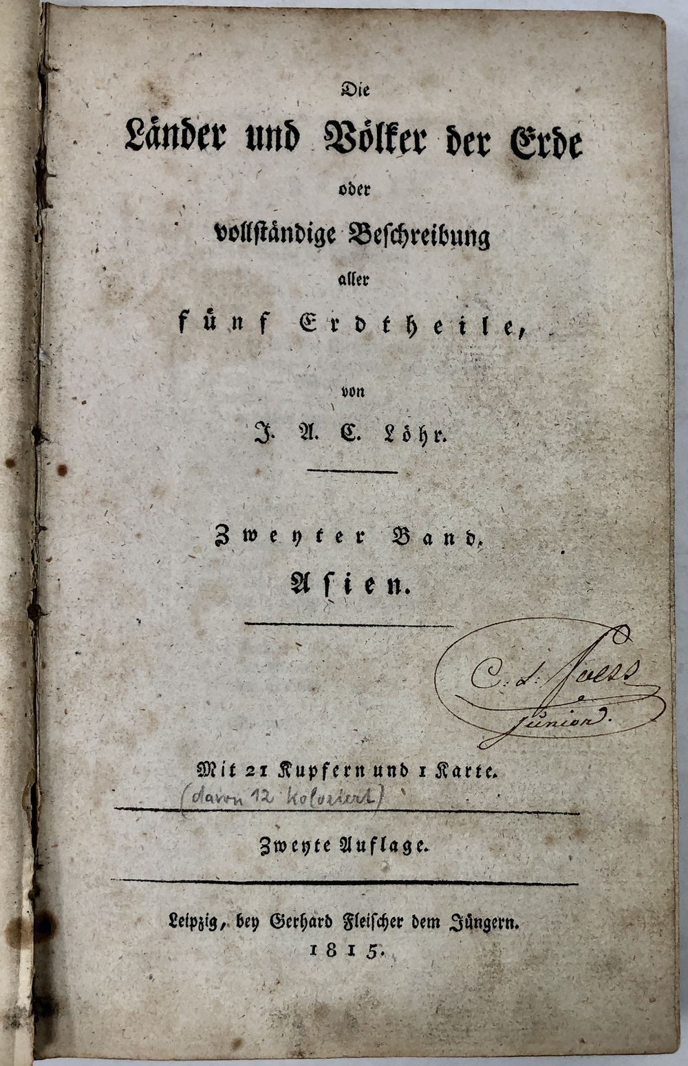 Die Länder und Völker der Erde oder vollständige Beschreibung aller fünf Erdtheile,…Zweyter Band. Asien. Mit 21 Kupfern und I Karte. Zweyte Auflage.