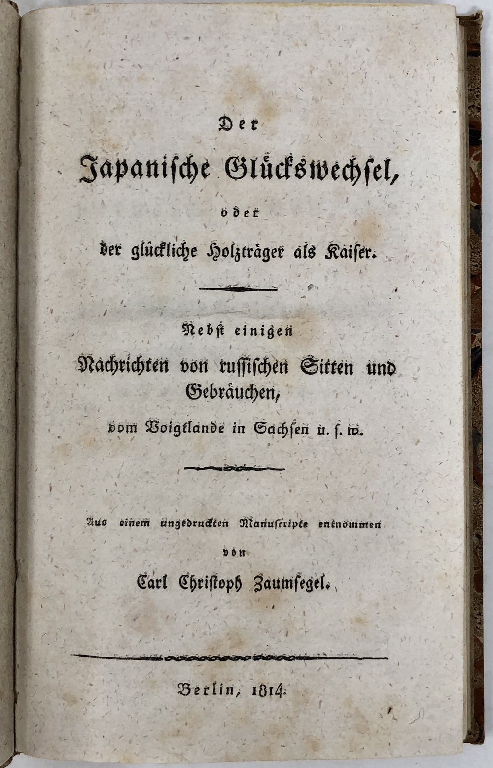 Der Japanische Glückswechsel, oder der Glückliche Holzträger als Kaiser. Nebst einigen Nachrichten von russischen Sitten und Gebräuchen, vom Voigtlandein Sachsen u. S.w. Aus einem ungedruckten Manuscripte entnommen…