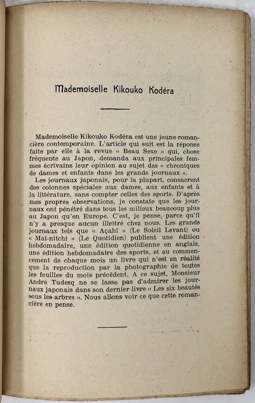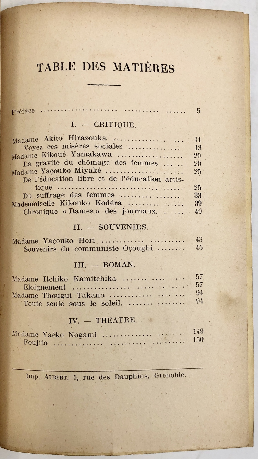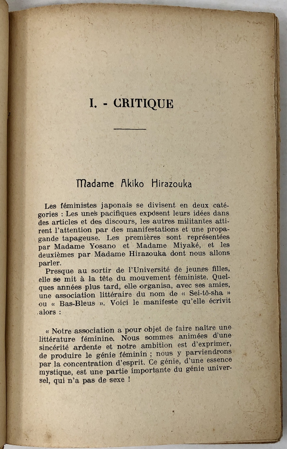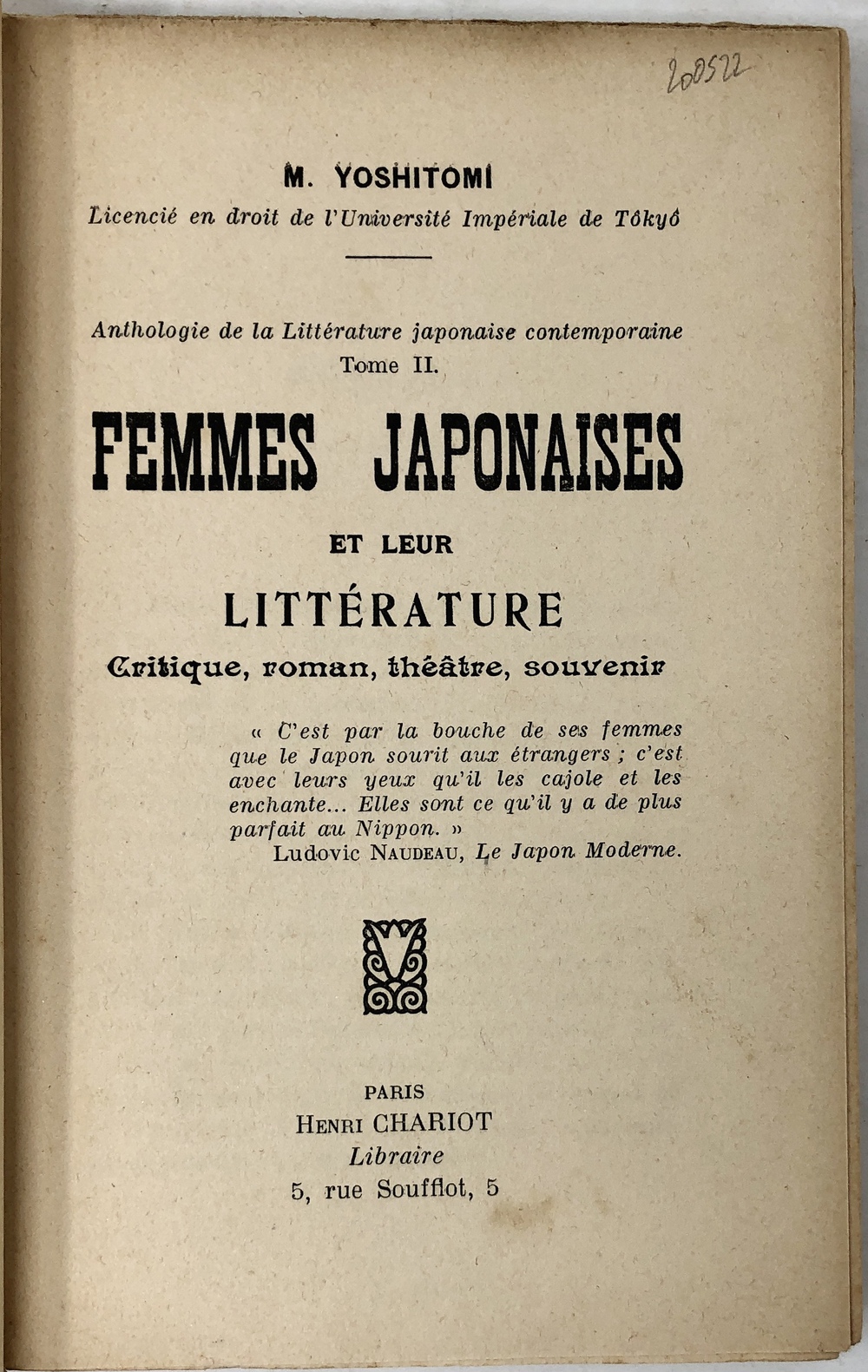 FEMMES JAPONAISES ET LEUR LITTÉRATURE. Critique, roman, théâtre, souvenir. (Anthologie de la Litterature japonaise contemporaine Tome II)