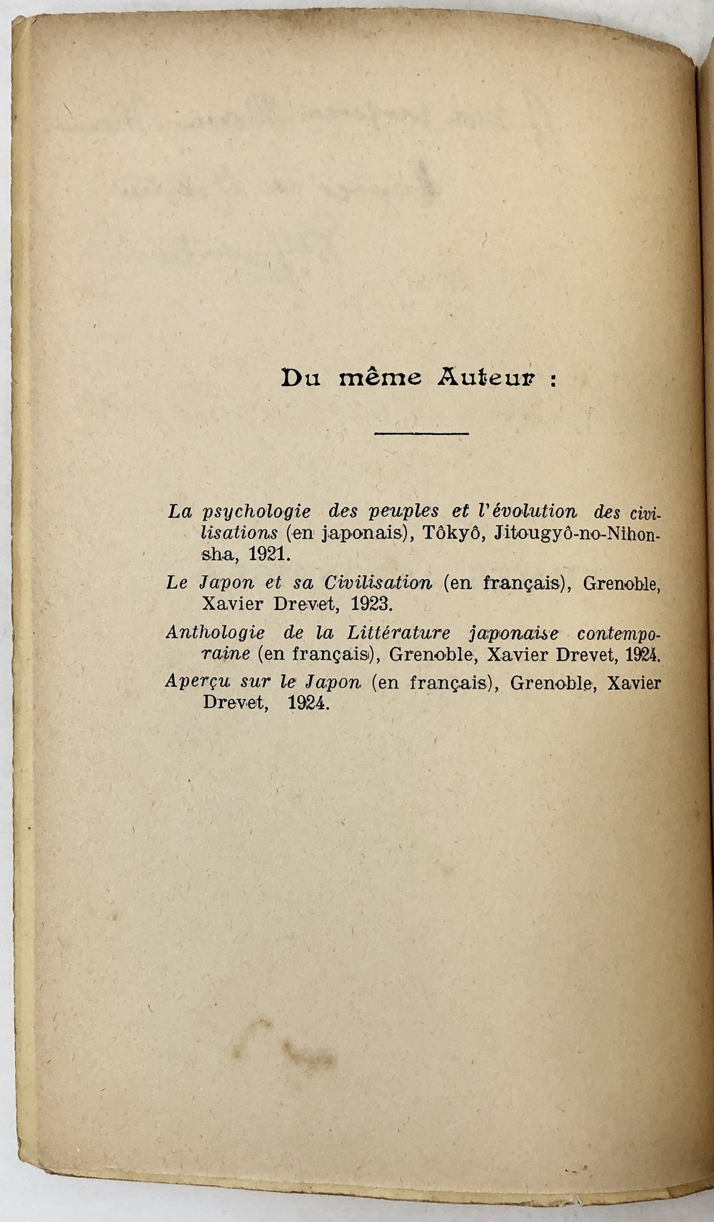 著者直筆献辞本 [1924年] パリ刊