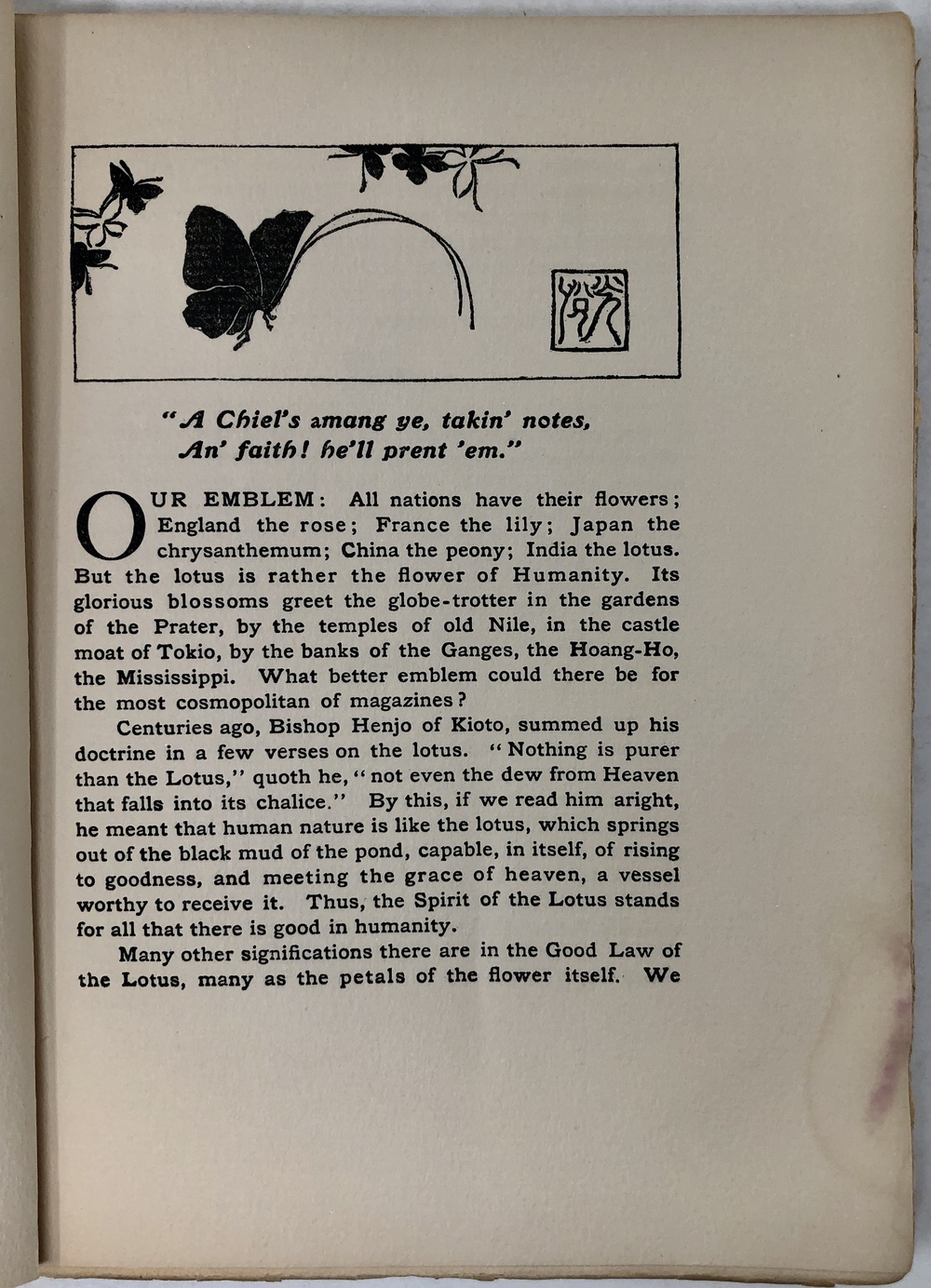 LOTUS. SPECIAL HOLIDAY NUMBER IN MEMORIAM JAMES A. McNeill Whistler. (Vol.I. No.1. Christmas Number)