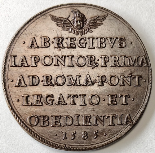 SIXTVS V PONT MAX AN V / AB REGIBVS IAPONIOR PRIMA AD ROMA PONT LEGATIO ET OBEDIENTIA 1585.