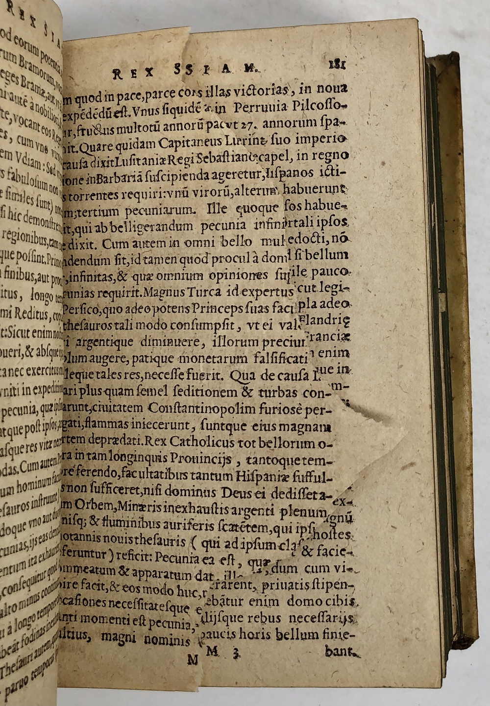 M2(pp.179, 180)、M5(pp.185, 186)に破れ(テキスト欠損あり)、ところどころ書き込みあり。合冊されているもう一つの著作のA2(pp.3, 4)に破れ(テキスト欠損あり)。旧蔵機関による押印とラベルあり。