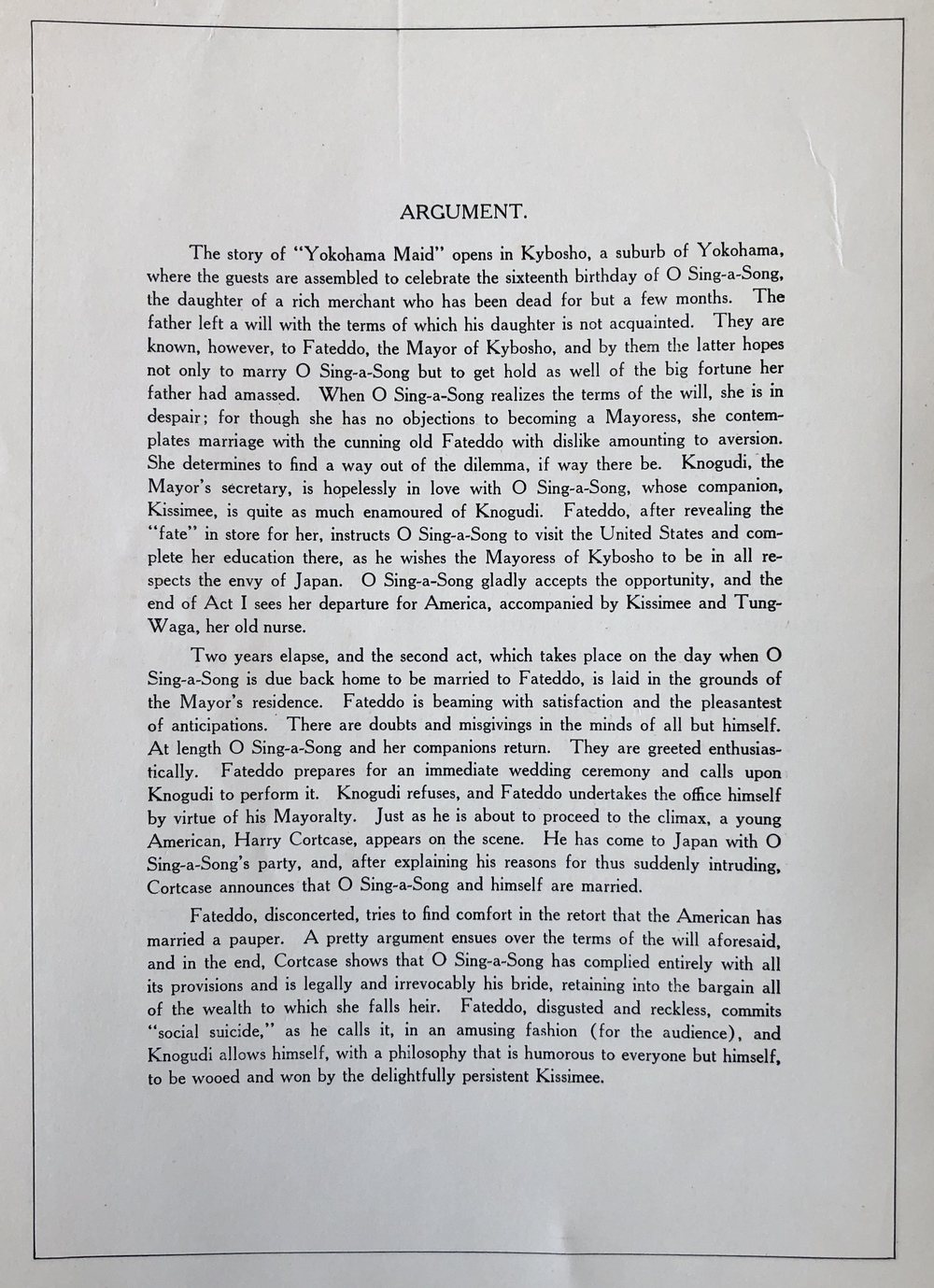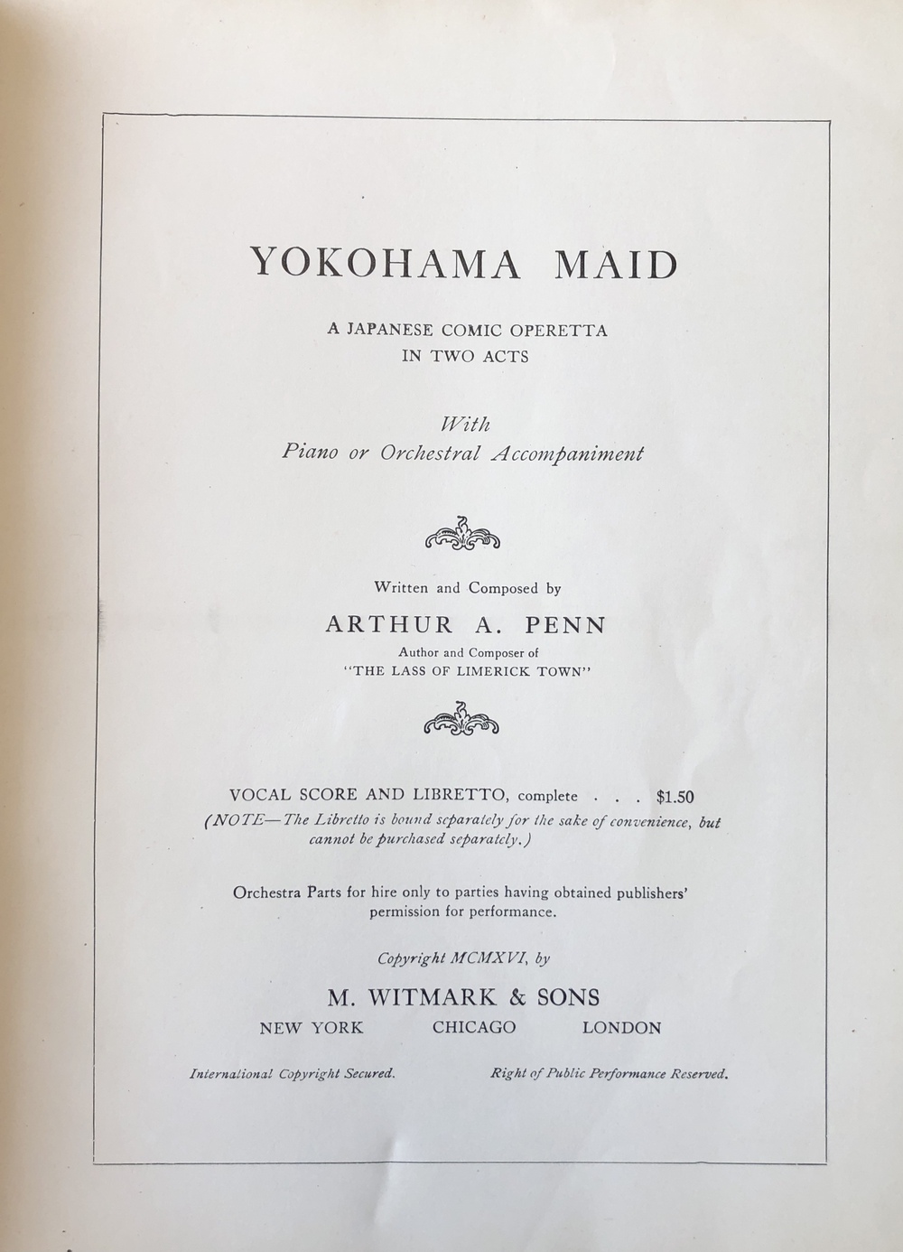 YOKOHAMA MAID: A JAPANESE COMIC OPERETTA IN TWO ACTS With Piano or Orchestral Accompaniment.