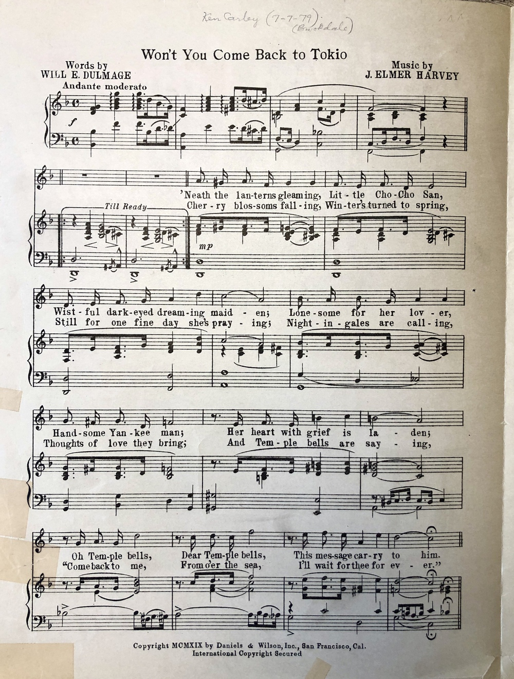 Dulmage, Will E. (words) / Harvey, J. Elmer (music).