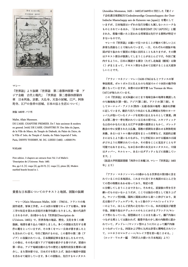 欧米を中心とした海外で刊行された書物であれば、古くは500年以上前から十数年前のものまで年代を問わず探し出します。特に力を入れている分野は、海外で刊行された日本研究(海外向けに国内で刊行された外語文献も含む)に関する書物やそれと関連する地図、航海記、日本の近代社会形成にも大きな影響を与えた、欧米の法学史、政治学史、経済学史、哲学史といった人文・社会科学諸分野の学説史に関する書物です。ただし、特定の分野に限定することはなく、絵本や文学、聖書などの宗教書、地域研究文献といったように、価値ある書物、必要とされる書物と思われるものであれば、年代、分野を問わず扱います。